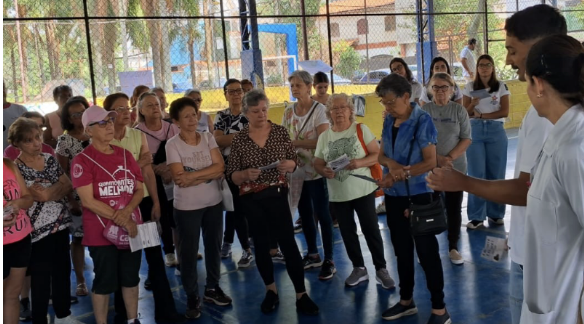 A atividade foi direcionada aos participantes do grupo acompanhado pelo Dr. João e reuniu 45 idosos, que participaram de um momento educativo voltado à promoção da saúde e ao reconhecimento de sinais de alerta.
